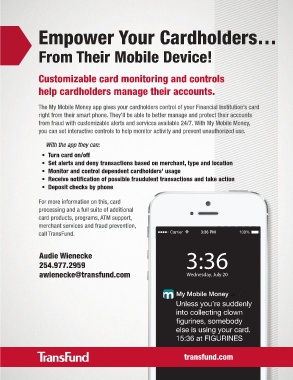 The My Mobile Money app gives your cardholders control of your Financial Institution’s card