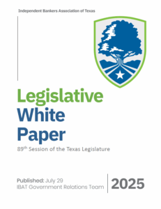 Community banks, like most small businesses, are facing significant challenges on multiple fronts. The Independent Bankers Association of Texas (IBAT) applauds the commitment and resilience of these small banks in supporting their communities and customers. Their exemplary performance during the pandemic reinforced the value and critical importance of this small sector of the banking industry on so many levels.